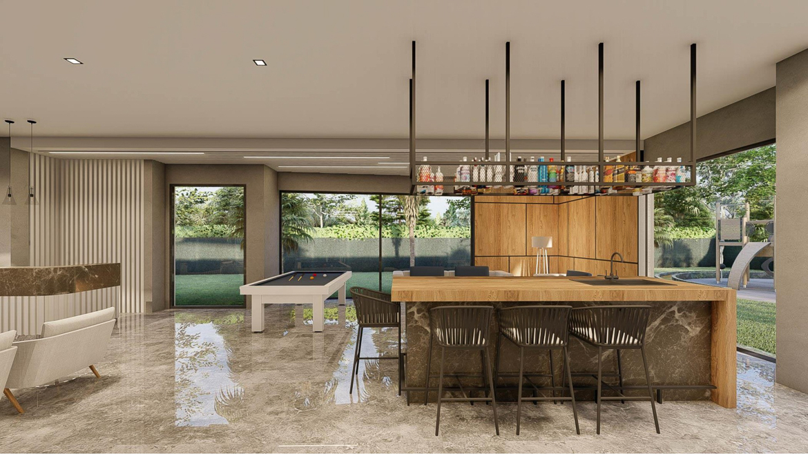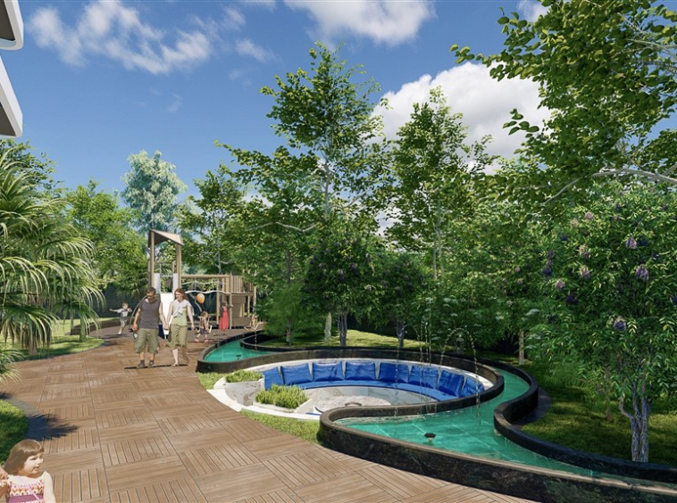 Інфраструктура комплексу: сад, відкритий та закритий басейни, кафе-бар, фітнес-центр, спа-центр, турецька лазня, сауна, парна, кімната відпочинку, дитячий майданчик, ігрова кімната, цілодобова охорона, камери безпеки, парковка, генератор, безкоштовний WI-FI та ін.