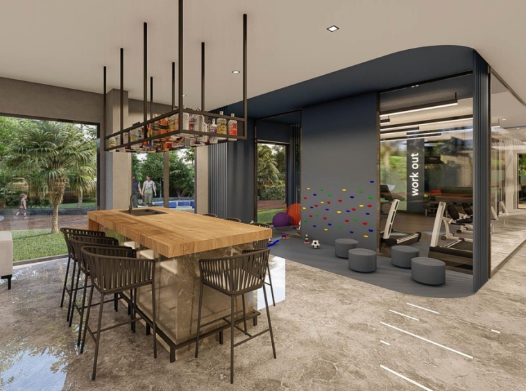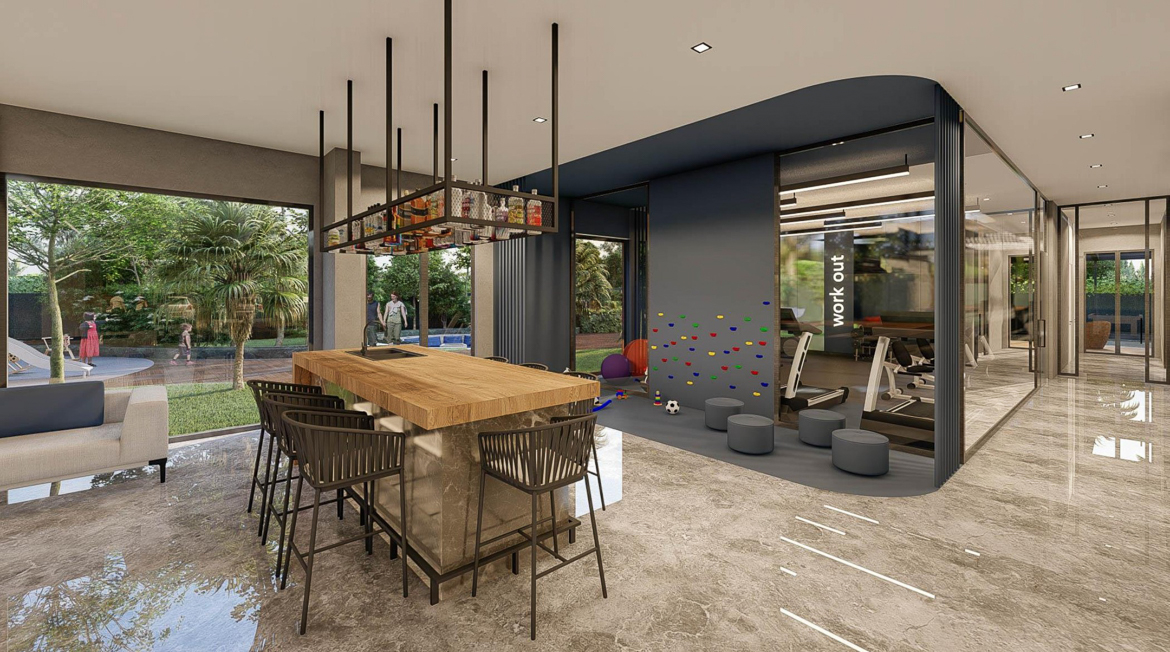 В інфраструктуру комплексу THE VOYAGE RESİDENCE входитиме відкритий та закритий басейн, турецька лазня, сауна, парна, кімната відпочинку, фітнес-центр, кінотеатр, дитячий ігровий майданчик, ігрова кімната, альтанка та барбекю, , камери безпеки, парковка, генератор та безкоштовний інтернет .
